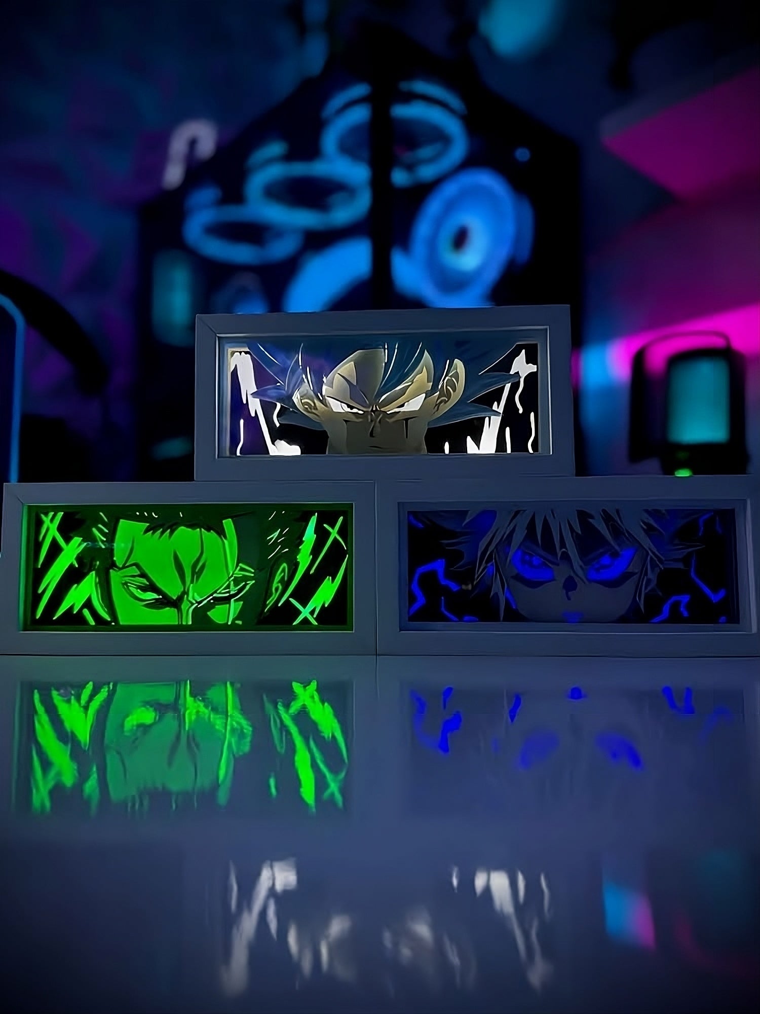 Un éclairage blacklight qui révèle tes figurines et posters manga pour une mise en valeur exceptionnelle.